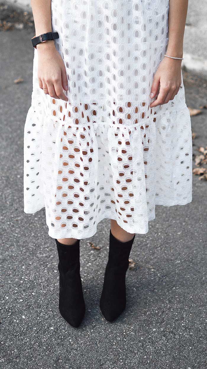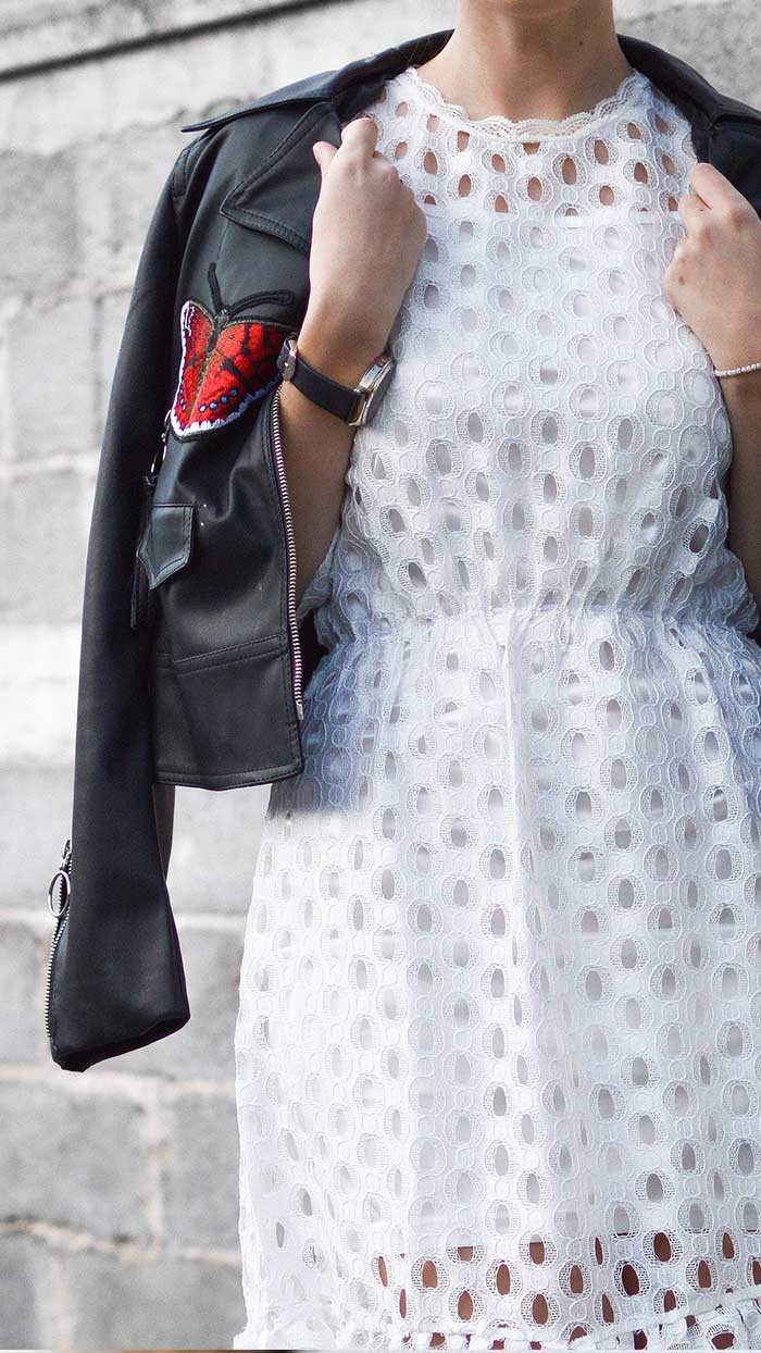 Perfect way to wear a white dress and a leather jacket